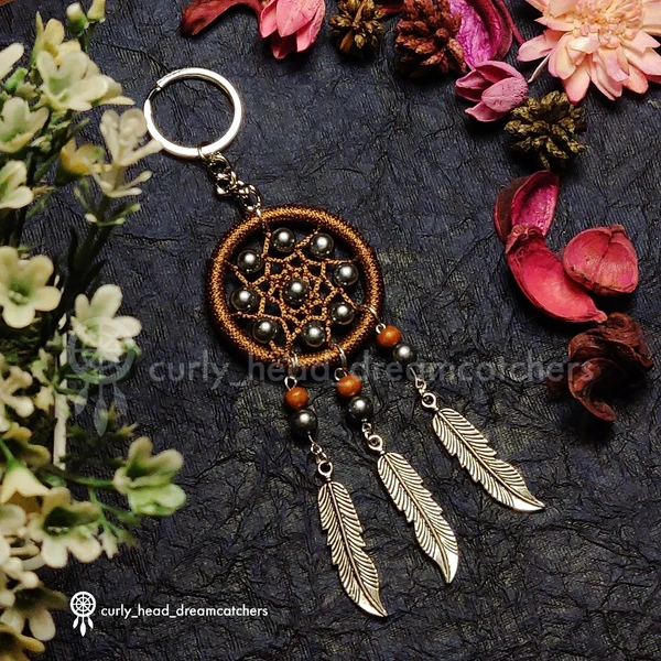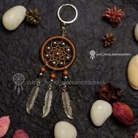 Beautiful Handcrafted Dreamcatcher keychain with bead work on the web and metal charms.