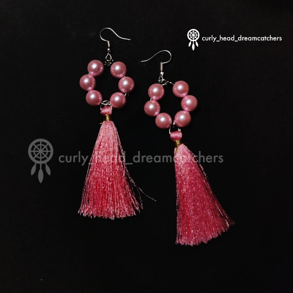 Light Pink Beaded Tassel Earrings. These beautiful earrings are stylish and light weight. Delivery within 5 to 7 business days.